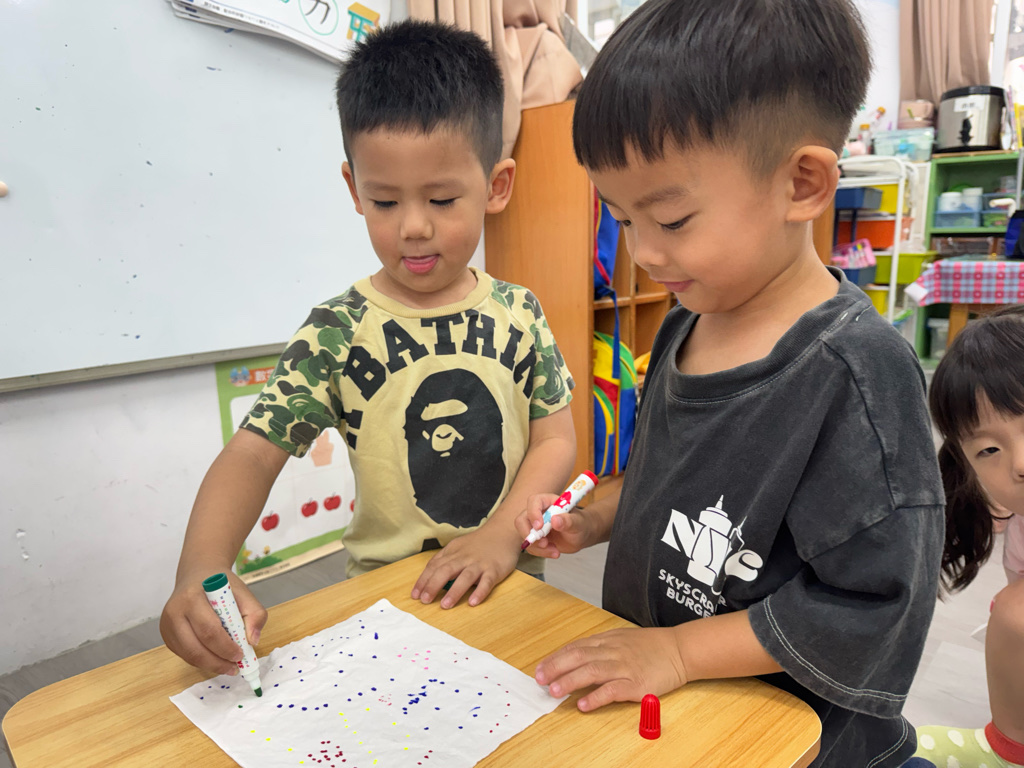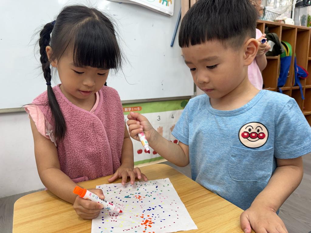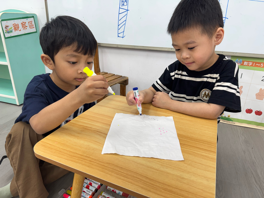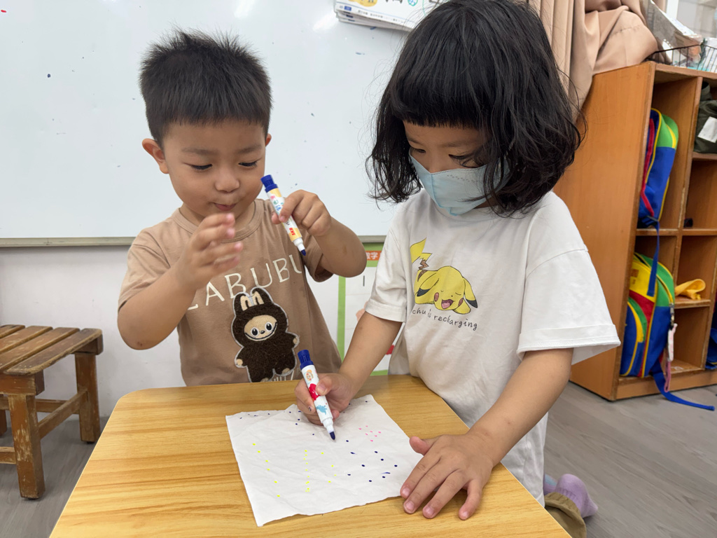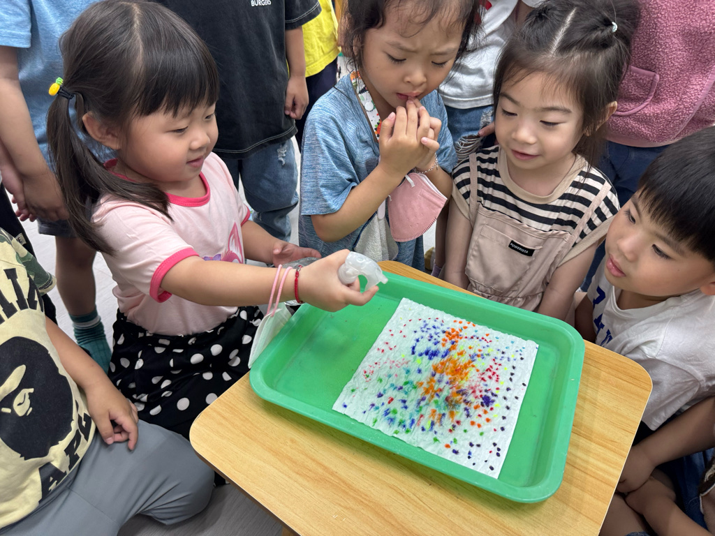 一起用色筆點點點,再用水槍噴噴觀察…