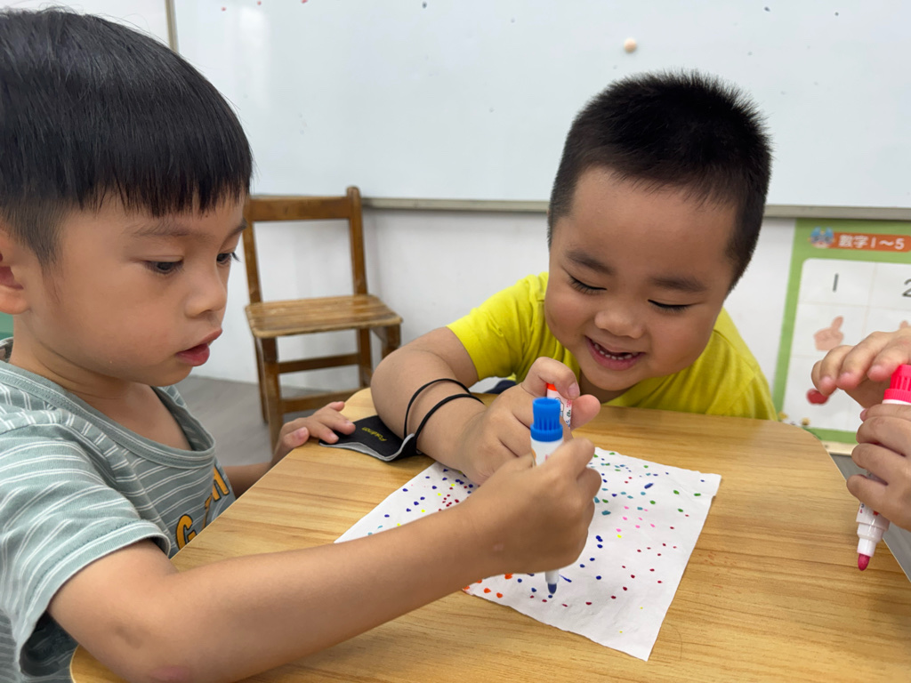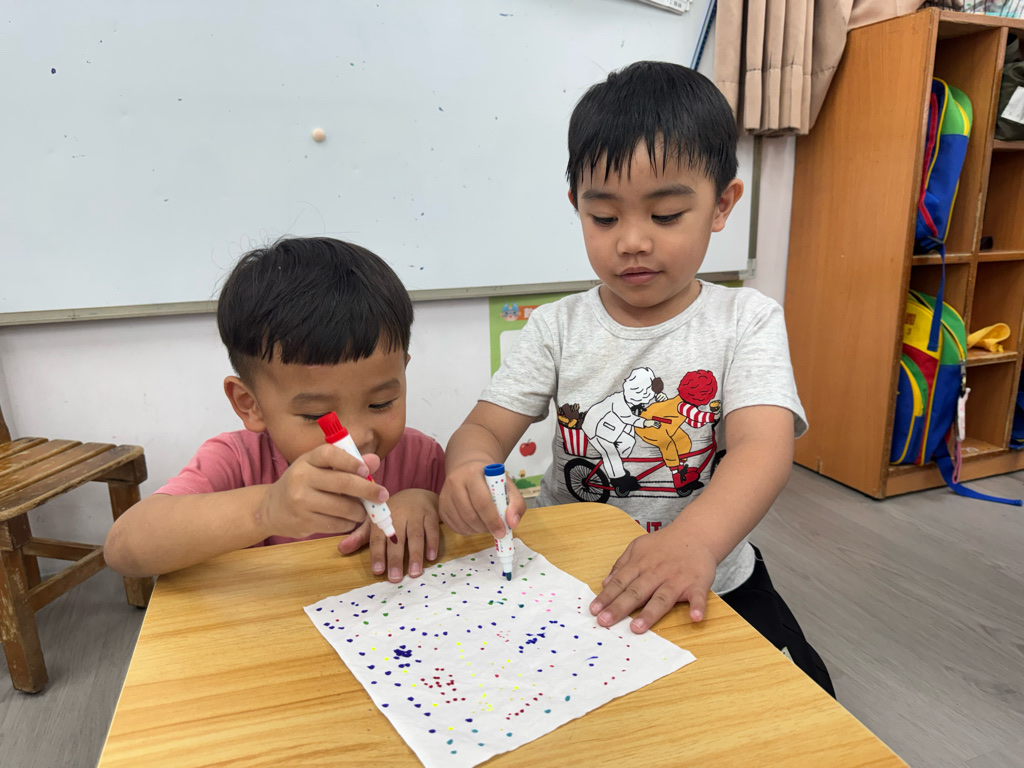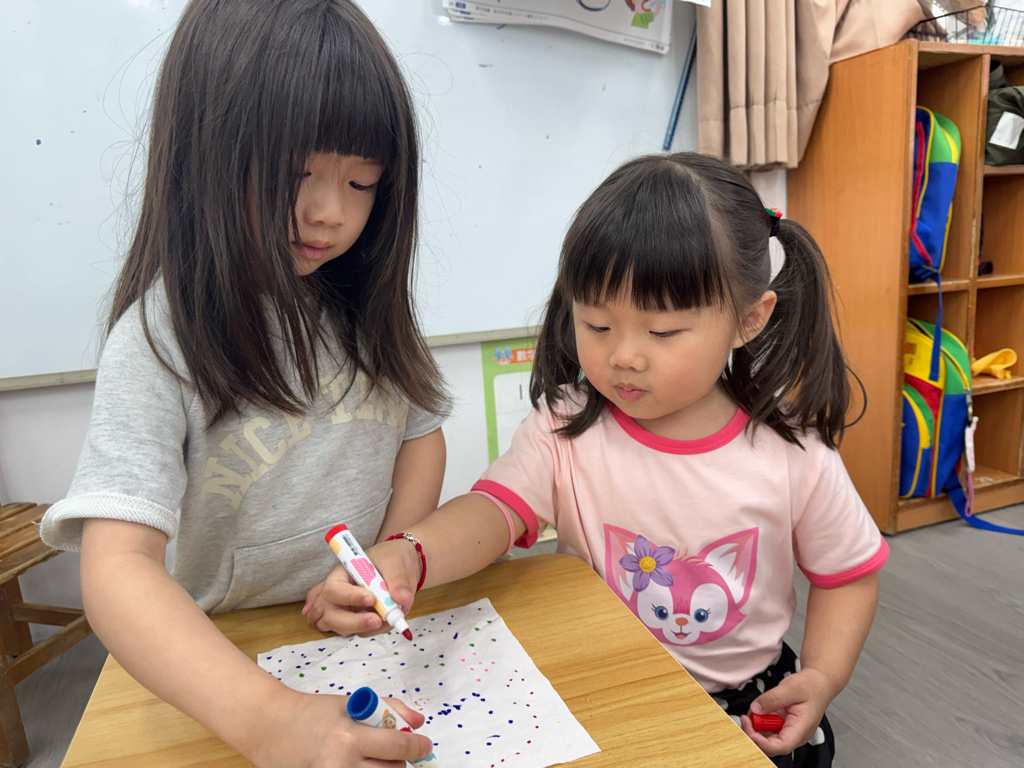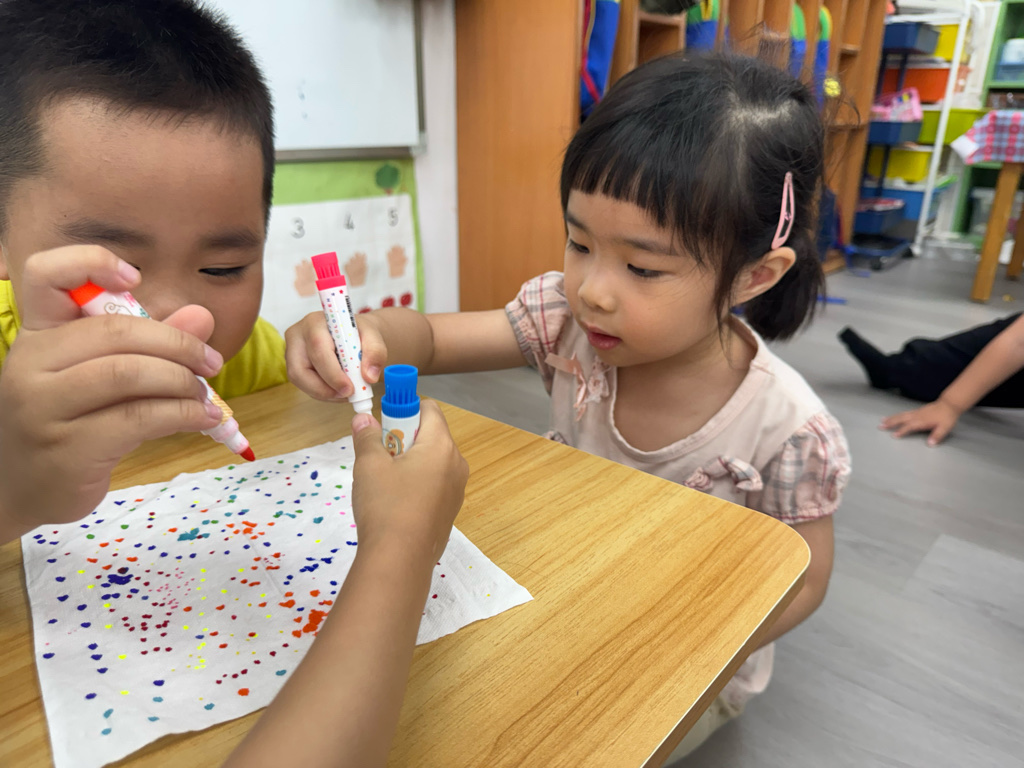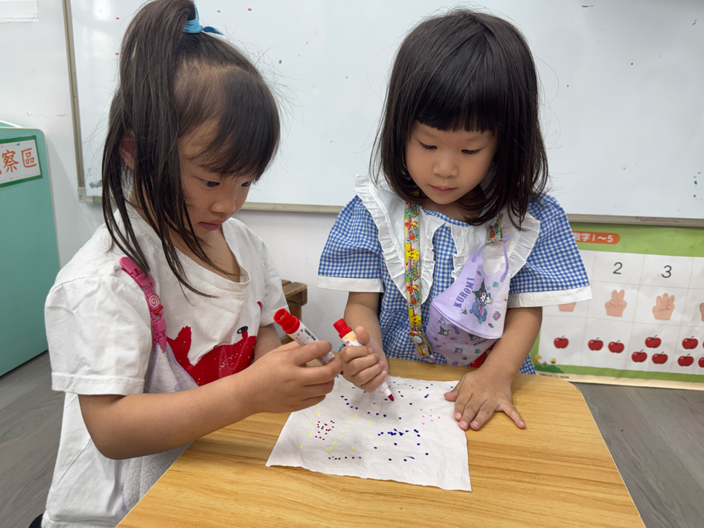 一起用色筆點點點,再用水槍噴噴觀察…