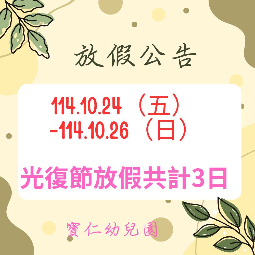 114.10.24光復節放假公告
