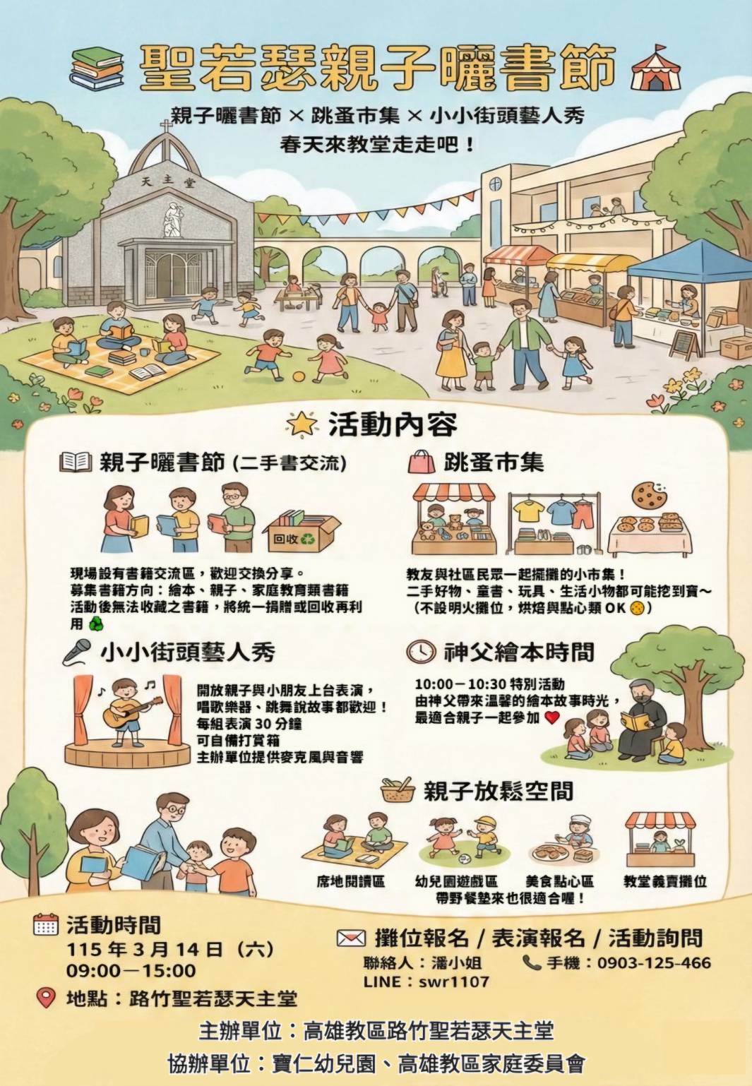 教堂將於 3/14(六)舉辦「聖若瑟親子曬書節」
