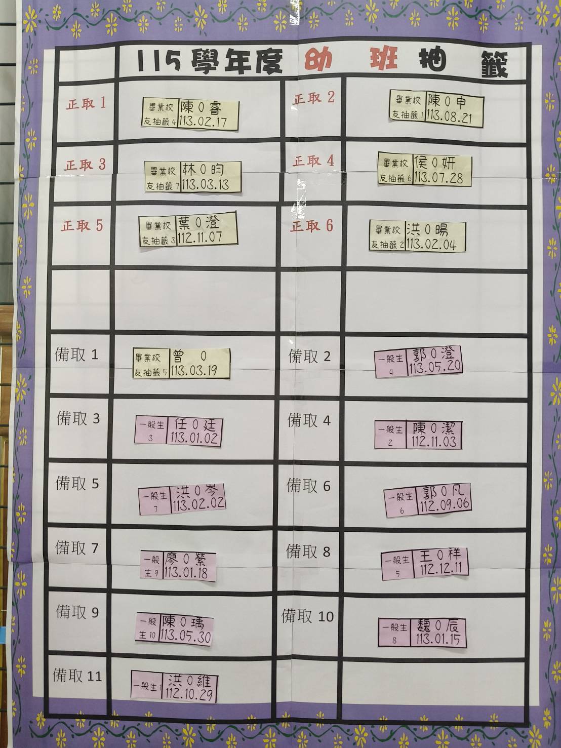 115學年度【幼班抽籤公告名單】